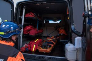 Auto osobowe ulega wypadkowi. Pojazd prowadziła młoda kobieta. Trzeba ją wydostać z pojazdu, udzielić jej pomocy i przetransportować. Według takiego scenariusza przebiegał pokaz technik ratowniczych, który dla uczestników II edycji Akademii BHP Wydawnictwa Górniczego przygotowała Ochotnicza Straż Pożarna w Bystrej.