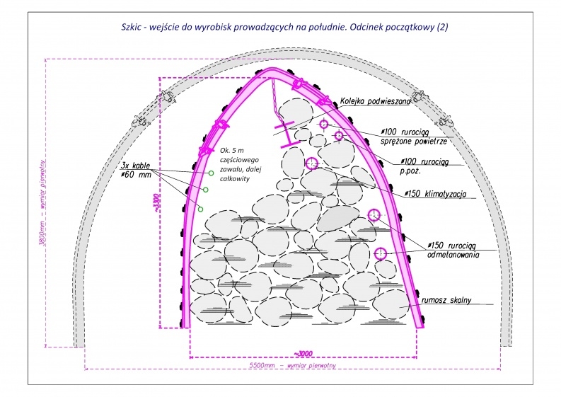 PYTANIE. Dlaczego nie wykonano skrętu chodnika ratowniczego na zachód zaraz za "5b", ani (jak wstępnie też zakładano) w np. połowie ściany?