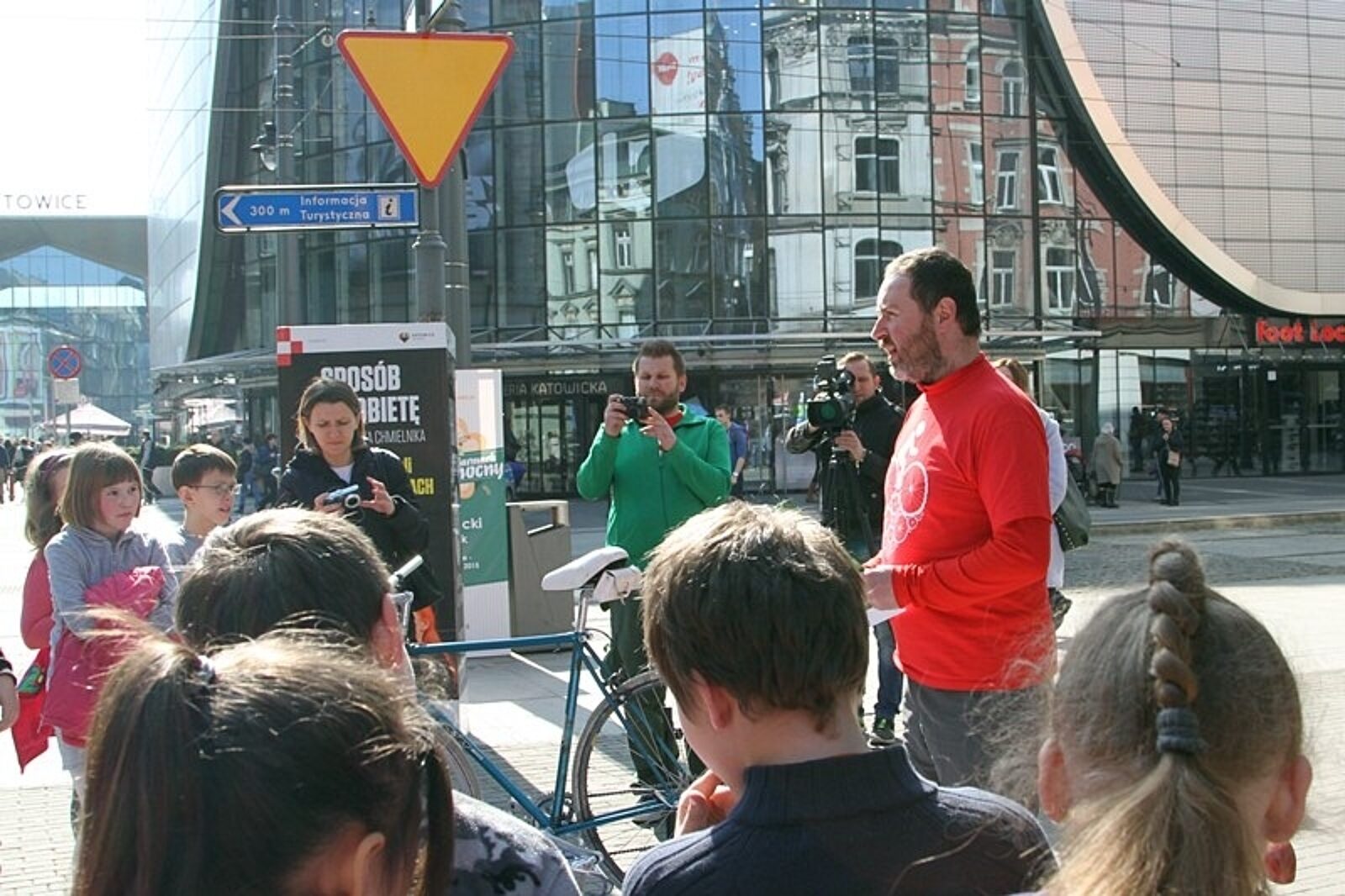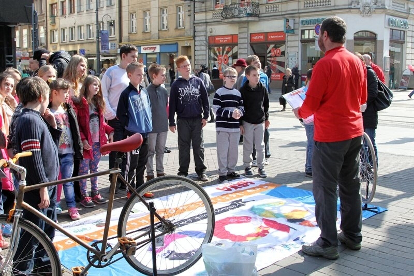 Uczniowie z katowickiej "dziesiątki" w czasie happeningu zaprezentowali transparent z logiem akcji oraz kilkukrotnie wykrzyczeli hasło: "Nie bądź jednorazowy"