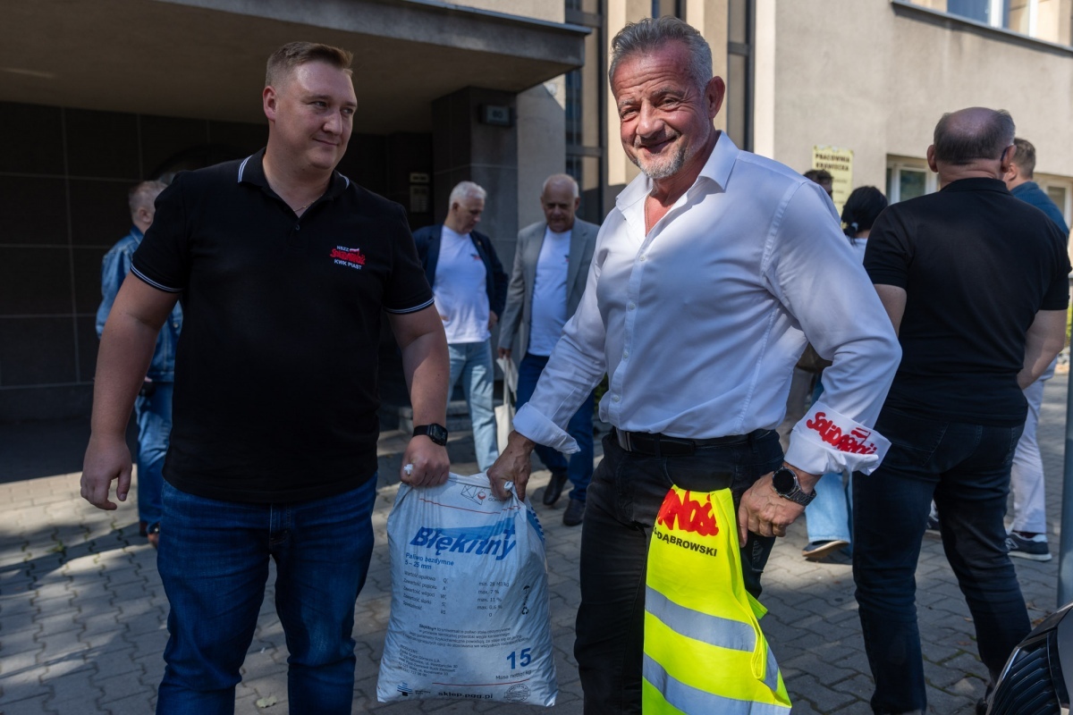 - Symbolicznie zostawiamy tu ekologiczny węgiel, o którym jest mowa w drugim rozdziale umowy społecznej, poświęconym nowoczesnym technologiom węglowym. Tzw. blue coal spokojnie mógłby być dotowany przez program "Czyste powietrze" - to paliwo bezdymne, bezsmogowe. Jest on spalany w różnego rodzaju uzdrowiskach - w Świeradowie-Zdroju czy Ustrzykach. Wszyscy go chętnie biorą, natomiast nikt nie chce w niego zainwestować, no bo przecież to paliwa z węgla - mówił Dominik Kolorz, szef śląsko-dąbrowskiej "Solidarności".