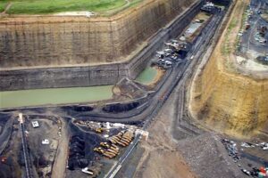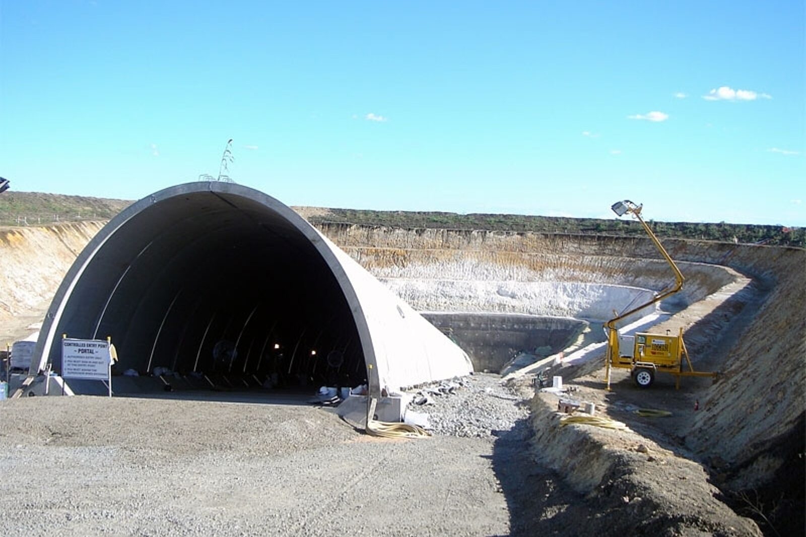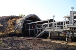 Australijska kopalnia węgla kamiennego w budowie – wlot do pochylni w obudowie z prefabrykatów betonowych