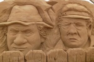 Choć w tym roku głośno było o rzeźbach przedstawiających Jezusa Chrystusa i Ostatnią Wieczerzę, wykonanych na plaży w Jelitkowie przez anonimowego artystę, to te najwspanialsze, zapierające dech w piersiach, nie powstają wcale na nadmorskich kąpieliskach, a zupełnie gdzie indziej. Piasek to kolejna po węglu kamiennym kopalina, z której można czynić cuda. Powie ktoś, że