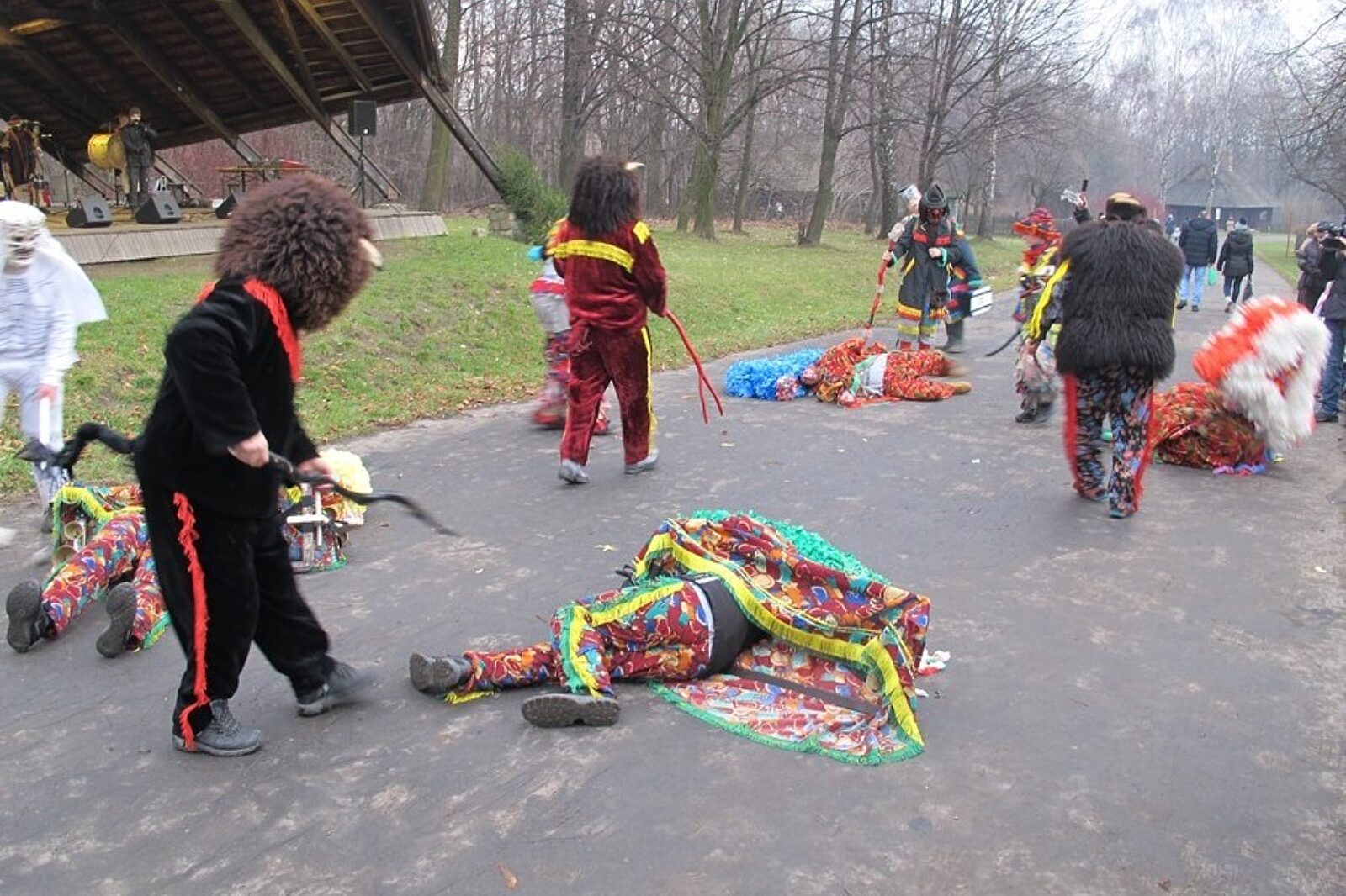Zespół Bałamuty ze Zwardonia zaprezentował niezwykle barwny spektakl przedstawiający dawny zwyczaj „gonienia dziada”, czyli wszechobecnego zła