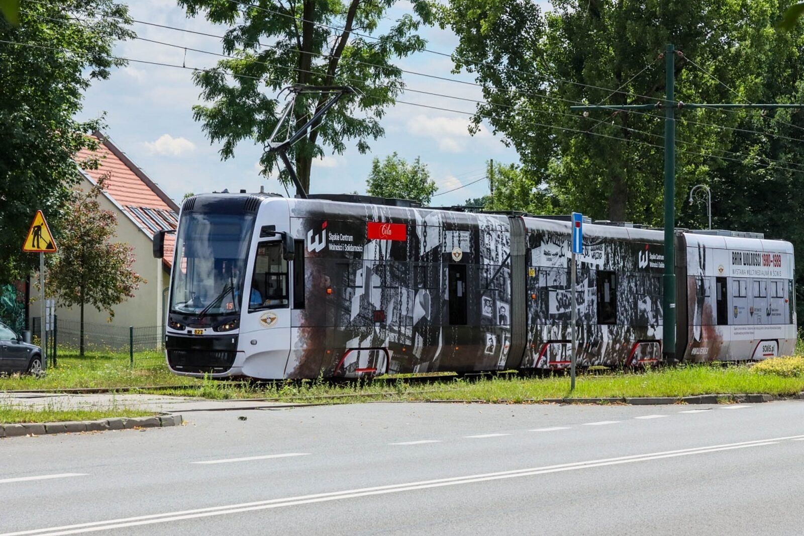 Tramwaj oklejony na zewnątrz charakterystycznymi czarno-białymi fotografiami można zauważyć w różnych miastach, na różnych trasach Tramwajów Śląskich. W oczy rzuca się napis „BANA WOLNOŚCI 1980–1989”.