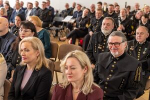 Uroczystość była połączona z promocją doktorską i habilitacyjną. Pracownikom nadano również stopnie górnicze i wręczono odznaczenia- o czym piszemy tutaj.