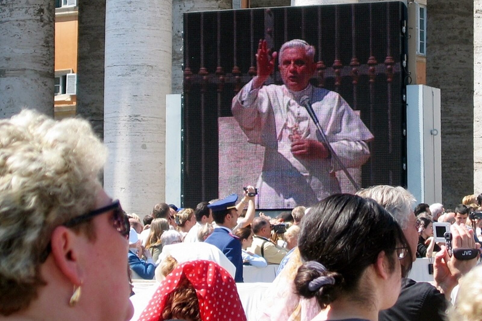 Benedykt XVI, 265. następca św. Piotra bogosławi zebranych na pierwszej audiencji generalnej po wyborze na papieża