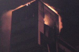 Jak mówią mieszkańcy budynków znajdujących się w pobliżu kopalni Bielszowice, ogień momentalnie opanował konstrucje szybu i taśmociągu