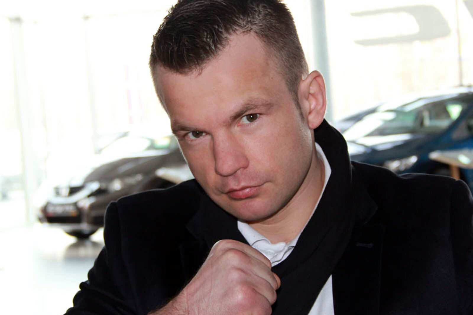Damian Jonak podczas historycznego już ważenia w cechowni kopalni Bobrek (przed ostatnią walką z Alexem Bunemą)