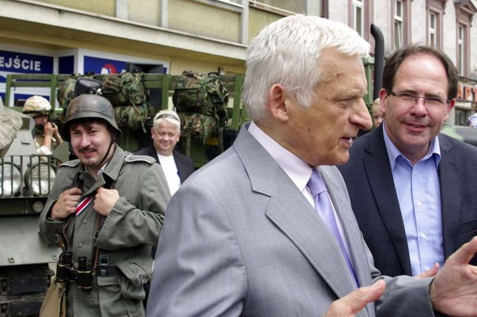 B. premier Jerzy Buzek wracając z wizyty w EC Szombierki zajrzał na paradę Śląskich Manewrów 2013