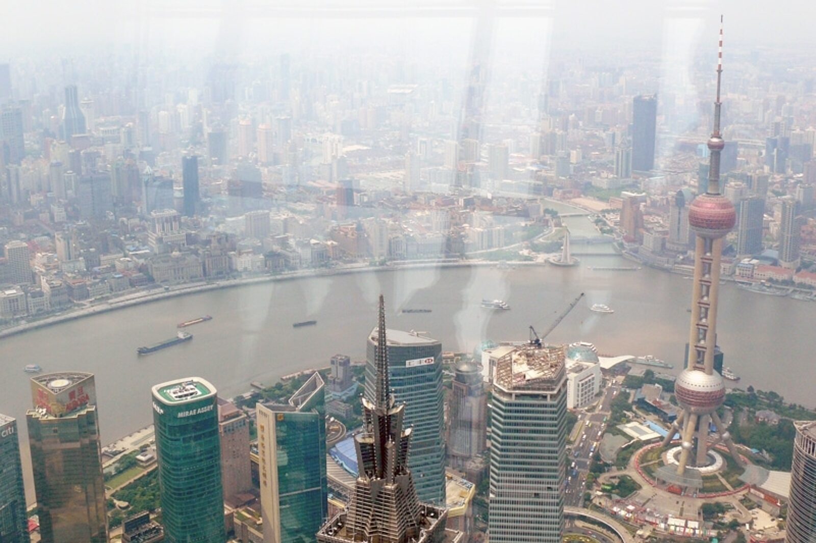 Nawet w sercu biznesowym Szanghaju można zobaczyć płynące po Jangcy barki z węglem