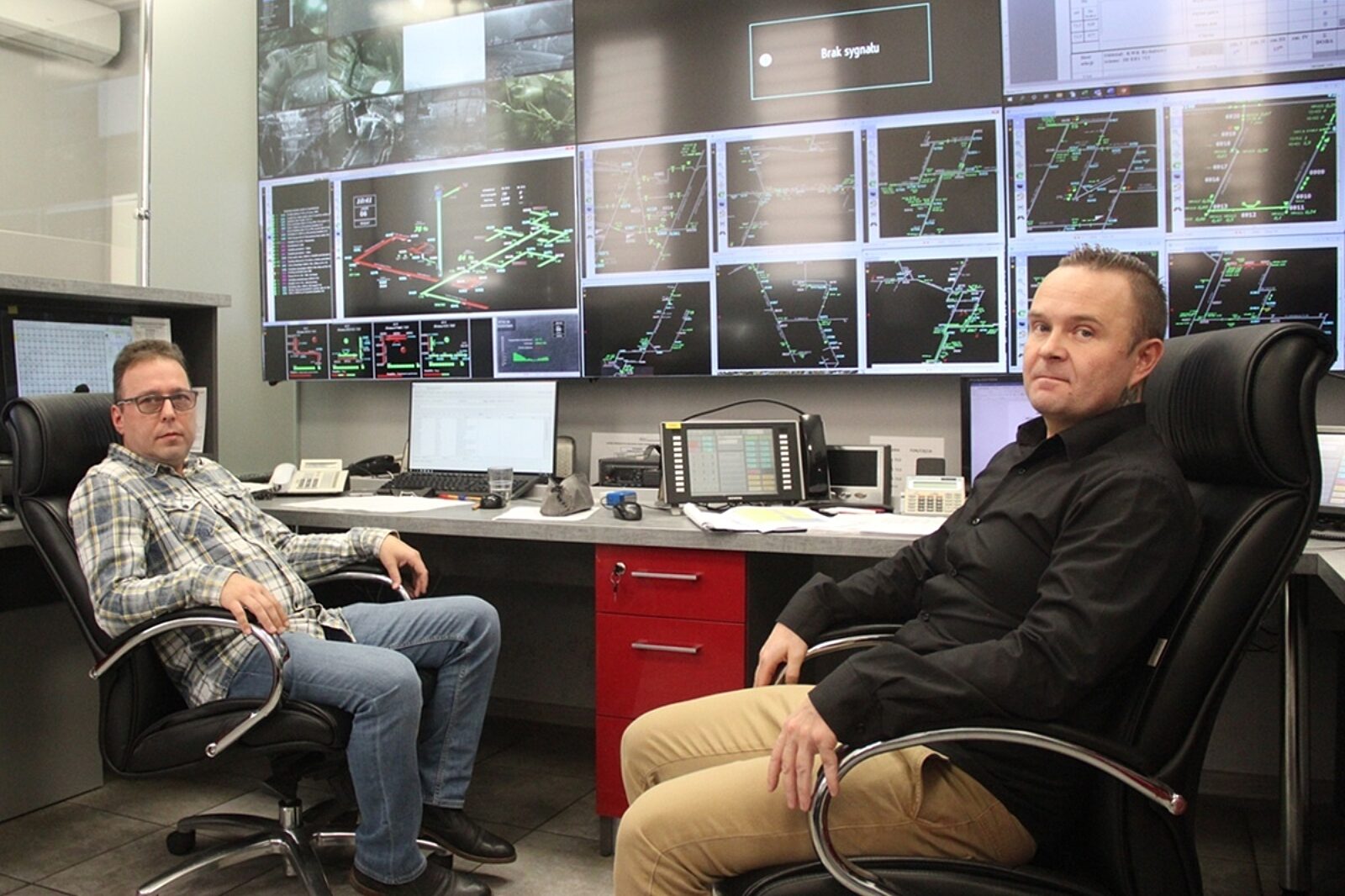 Dyspozytorzy ruchu Rydułtowy: Marek Wawrzyńczyk i Leszek Stryjski na nowym stanowisku pracy