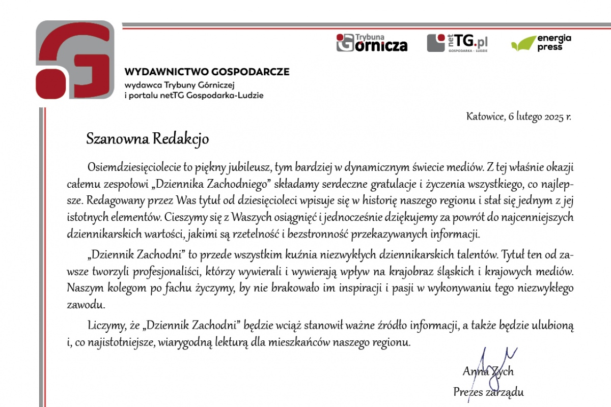 Z okazji 80-lecia życzymy całemu zespołowi, by nadal wiódł prym wśród regionalnych gazet, był ważnym źródłem informacji i świetną, codzienną lekturą dla grona wiernych czytelników!