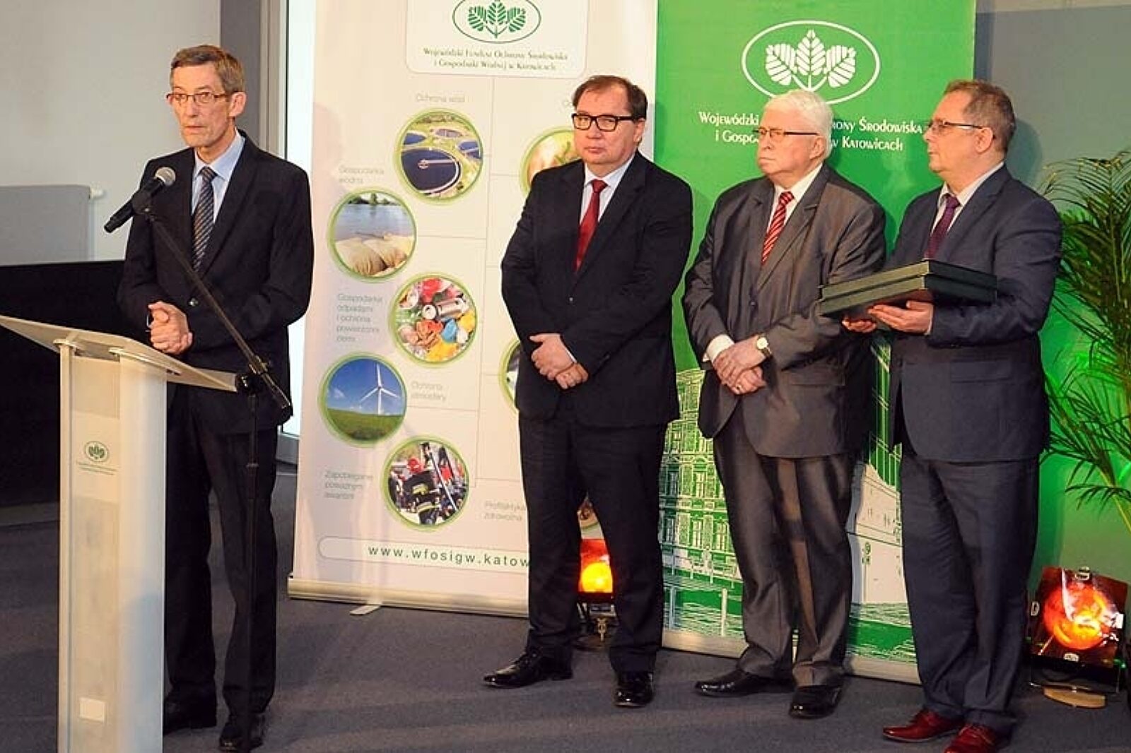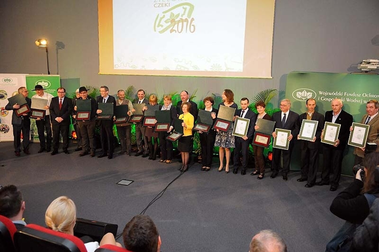 Laureaci tegorocznych Zielonych Czeków oraz dyplomów przyznanych przez Wojewódzki Fundusz Ochrony Środowiska i Gospodarki Wodnej w Katowicach pozują do wspólnej fotografii