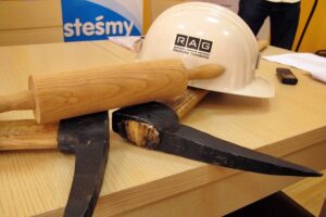 Pomiędzy kilofami znalazł się również kask z logo niemieckiej spółki RAG.