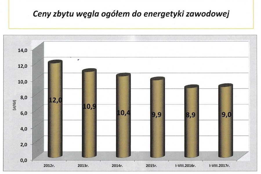 Warto też zauważyć, że węgiel jest dziś znacznie tańszy niż przed laty. Od roku 2012, kiedy za GJ polska energetyka płaciła 12 zł tendencja była praktycznie cały czas malejąca aż do wspomnianego roku 2016, kiedy za jeden GJ płacono 8,9 zł. Rok później wartość ta wzrosła zaledwie o 10 gr.