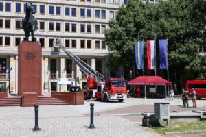 Ćwiczenia ewakuacji przeprowadzili mundurowi 13. Śląskiej Brygady Obrony Terytorialnej, Śląskiego Oddziału Straży Granicznej i KM PSP w Katowicach. W symulacji uczestniczyli też medycy z Wojewódzkiego Pogotowia Ratunkowego.