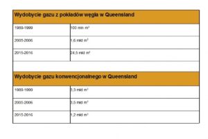 O tym, że w Queensland nastąpił całkowity zwrot w kierunku wydobycia gazu niekonwencjonalnego świadczy spadek produkcji ze złóż konwencjonalnych. Same udokumentowane rezerwy w tradycyjnych złożach władze stanu Queensland obliczają na ok. 10 mld m3, podczas gdy zasoby CBM szacują na przynajmniej 1,03 bln m3. Szacowane zasoby dla całej Australii to 1,2 bln m3. Oczywiście Australia nie rezygnuje z produkcji z konwencjonalnych złóż – pod tym względem również jest znaczącym graczem. W 2017 roku tylko u wybrzeży terytorium Australii Zachodniej wydobyto blisko 60 mld m3 gazu ziemnego, a w całym kraju ponad 73 mld m3. Jednak według danych rządowej agencji Geoscience Australia, w ciągu najbliższych kilku lat cały kraj czeka zmiana i dominujące w tej chwili wydobycie gazu konwencjonalnego offshore zostanie stopniowo zastępowane przez produkcję gazu niekonwencjonalnego, głównie za sprawą nowych odkryć i nowych projektów wydobywczych związanych ze wzrostem znaczenia CBM.