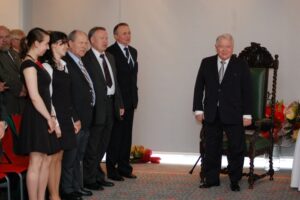 Podczas niezwykłej fety w katowickim hotelu Angelo nie zabrakło przyjaciół Profesora i jego najbliższej rodziny. Był m.in. syn, zięć i dwie wnuczki, z których dziadek - jak sam mówi - jest bardzo dumny. Na urodziny przyszli też przedstawiciele nauki, wyższych uczelni i wszystkich liczących się firm górniczych i przemysłowych na Śląsku. W imieniu Kompanii Węglowej w Katowicach życzenia i kwiaty przyniósł Marek Uszko. Życzenia składał też m.in. prezes Wyższego Urzędu Górniczego Piotr Litwa a uroczystą laudację, w której skrótowo opisano zasługi i drogę życiową prof. Krzystolika wygłosił dyrektor naczelny Głównego Instytutu Górnictwa prof. Józef Dubiński.