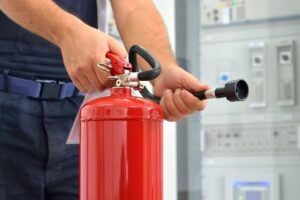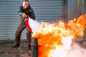 - prowadzenia instruktaży i szkoleń w zakresie ochrony przeciwpożarowej ze szczególnym uwzględnieniem zasad ewakuacji i obsługi podręcznego sprzętu gaśniczego