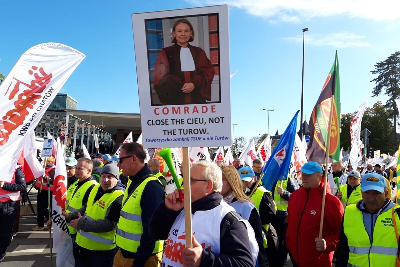 Przywoływane są słowa szefa NSZZ Solidarność Piotra Dudy, które padły pod siedzibą TSUE.