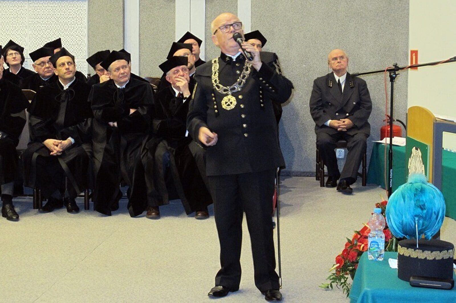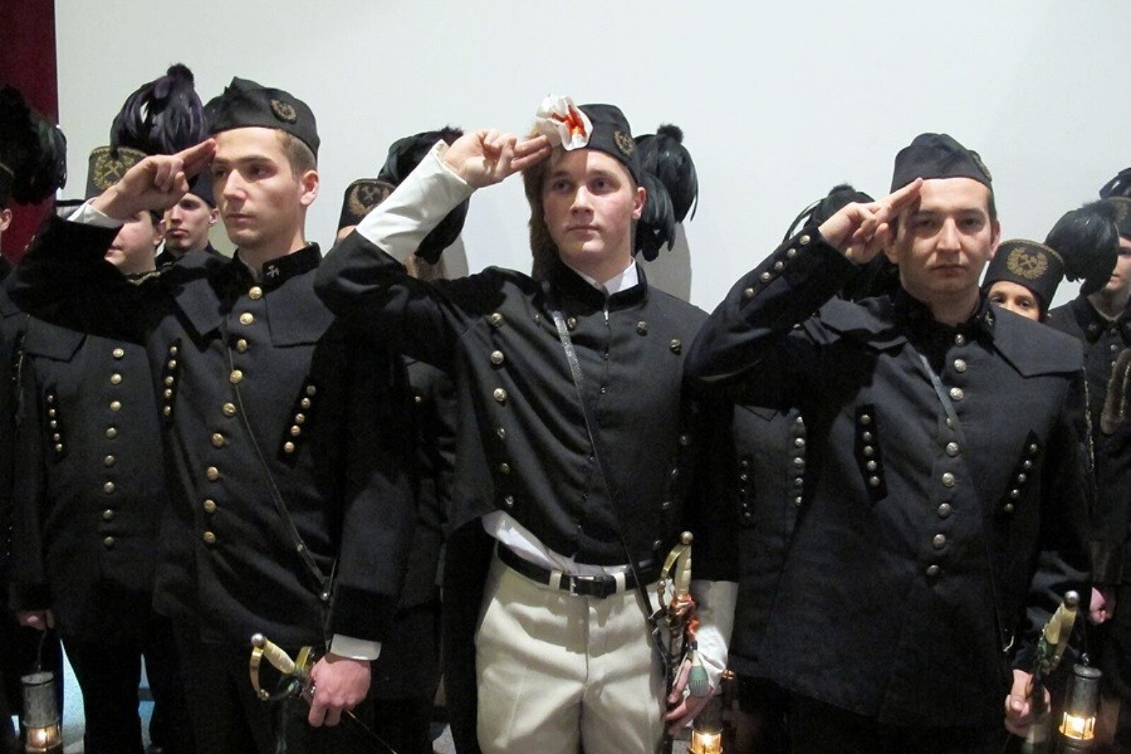 Uroczystości w Politechnice Śląskiej zakończył tradycyjny skok przez skórę w wykonaniu młodych adeptów górnictwa