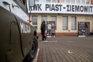O wydarzeniach sprzed czterech dekad przypomniały dziś pod kopalnią Piast milicyjne pojazdy. Nie zabrakło tu także eksponatów wagi ciężkiej jak choćby transporterów opancerzonych, które były częstym widokiem na ulicach, po wprowadzeniu przez gen. Wojciecha Jaruzelskiego stanu wojennego. Byli dziś pod Piastem także milicjanci, którzy witali wczesnym rankiem górników przyjeżdżających do bieruńskiej kopalni na szychtę. W rolę MO wcielili się członkowie grup rekonstrukcyjnych, którzy na „warcie” ogrzewali się przy koksiakach.