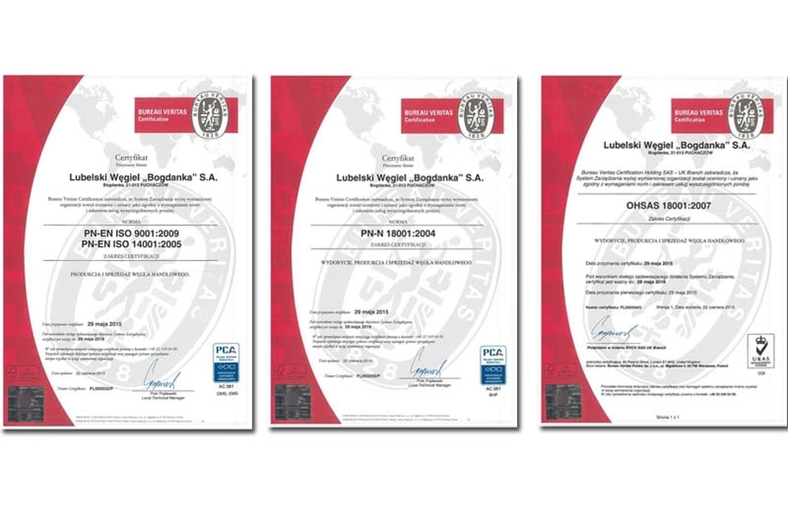 Tym samym LW Bogdanka SA w podsumowaniu stała się posiadaczem odnowionych certyfikatów (w zakresie: wydobycie, produkcja i sprzedaż węgla handlowego):