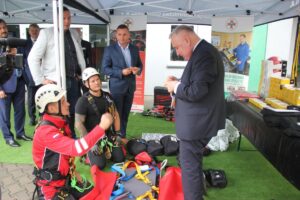 Podczas uroczystości przekazania sprzętu odbył się pokazy umiejętności w wykonaniu ratowników górniczych wyspecjalizowanych w ratownictwie wysokościowym. zaprezentowano także przewoźny wyciąg ratowniczy mogący wyprowadzić na powierzchnię ludzi z głębokości nawet 1400 m.