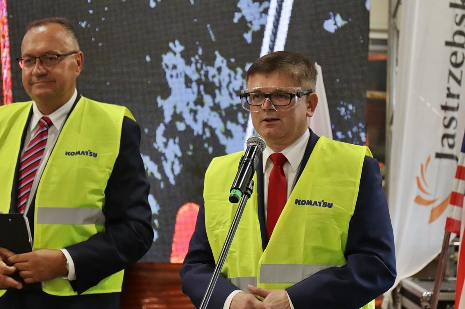 Grzegorz Kucharski - prezes Joy Global Poland przekazał szefowi JSW Włodzimierzowi Hereźniakowi pilota, za pomocą którego steruje się Bolter Minerem