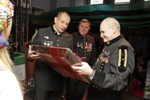 Metropolita katowicki, wraz z prezydentem Uszokiem oraz Kamilem Durczokiem otrzymali z rąk prezesa KHW honorowe szpady górnicze