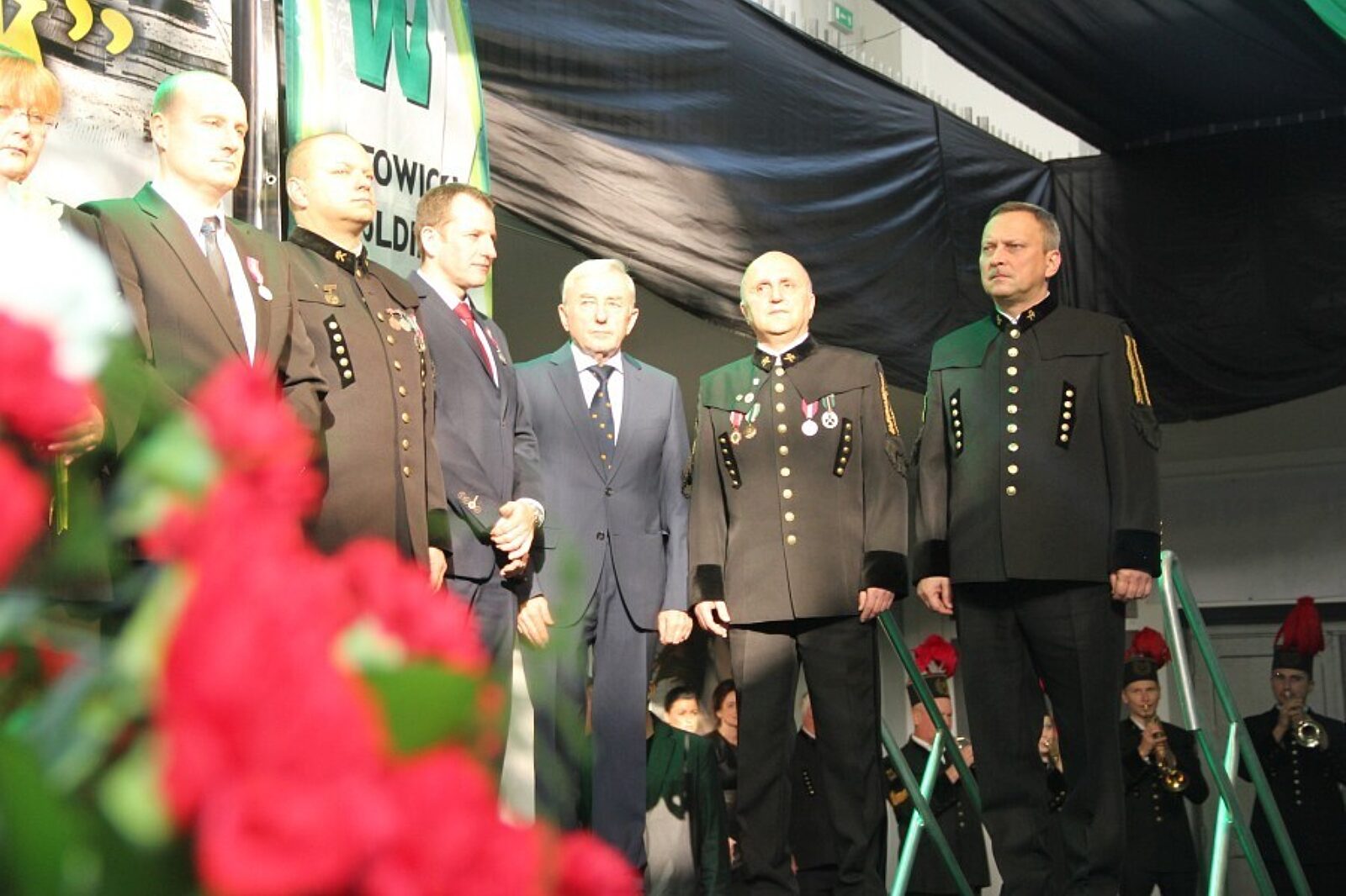 Na uroczystość (rozpoczętą odegraniem hymnów państwowego i górniczego przez orkiestrę dętą kopalni Wieczorek pod batutą Andrzeja Pisarzowskiego oraz minutą ciszy ku czci poległych pod ziemią górników) przybyli członkowie zarządu KHW oraz przedstawiciel prezydenta RP - prof. Bolesław Pochopień, ministra energii - Jonasz Drabek, poseł PiS Bożena Borys-Szopa oraz prezydenci miast: Katowic - Marcin Krupa i Mysłowic - Edward Lasok. Obecni byli też reprezentaci administracji państwowej, CSRG, WUG, wojska, policji, strażaków.
