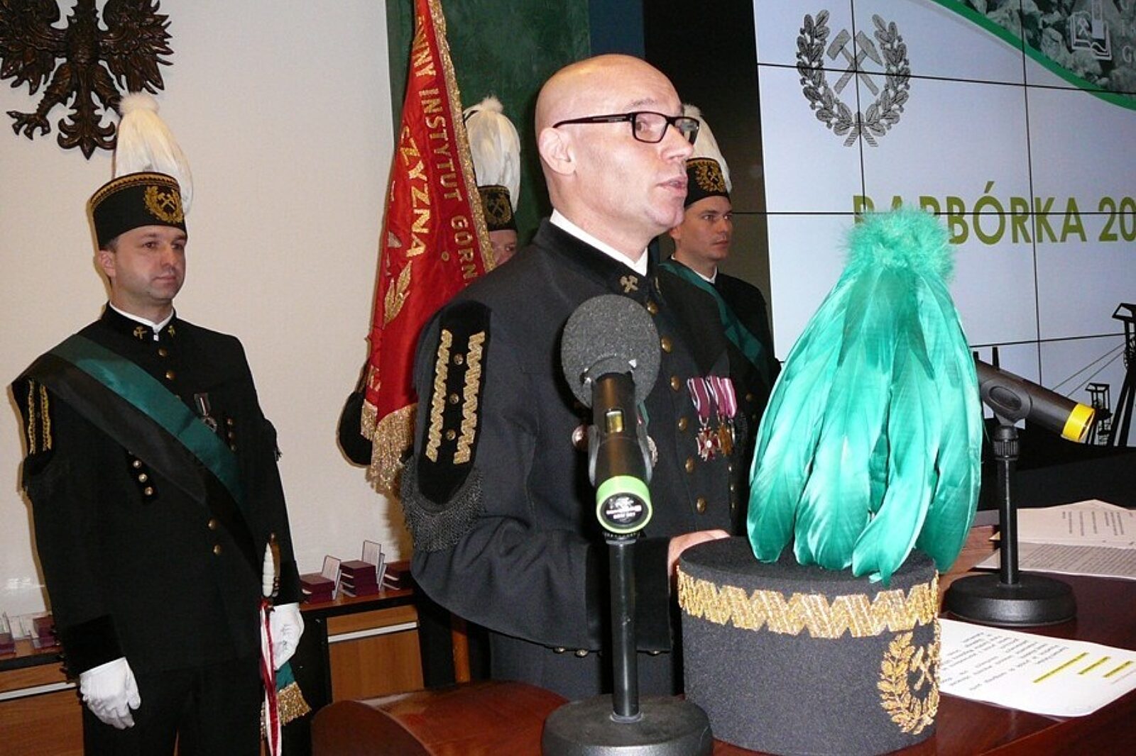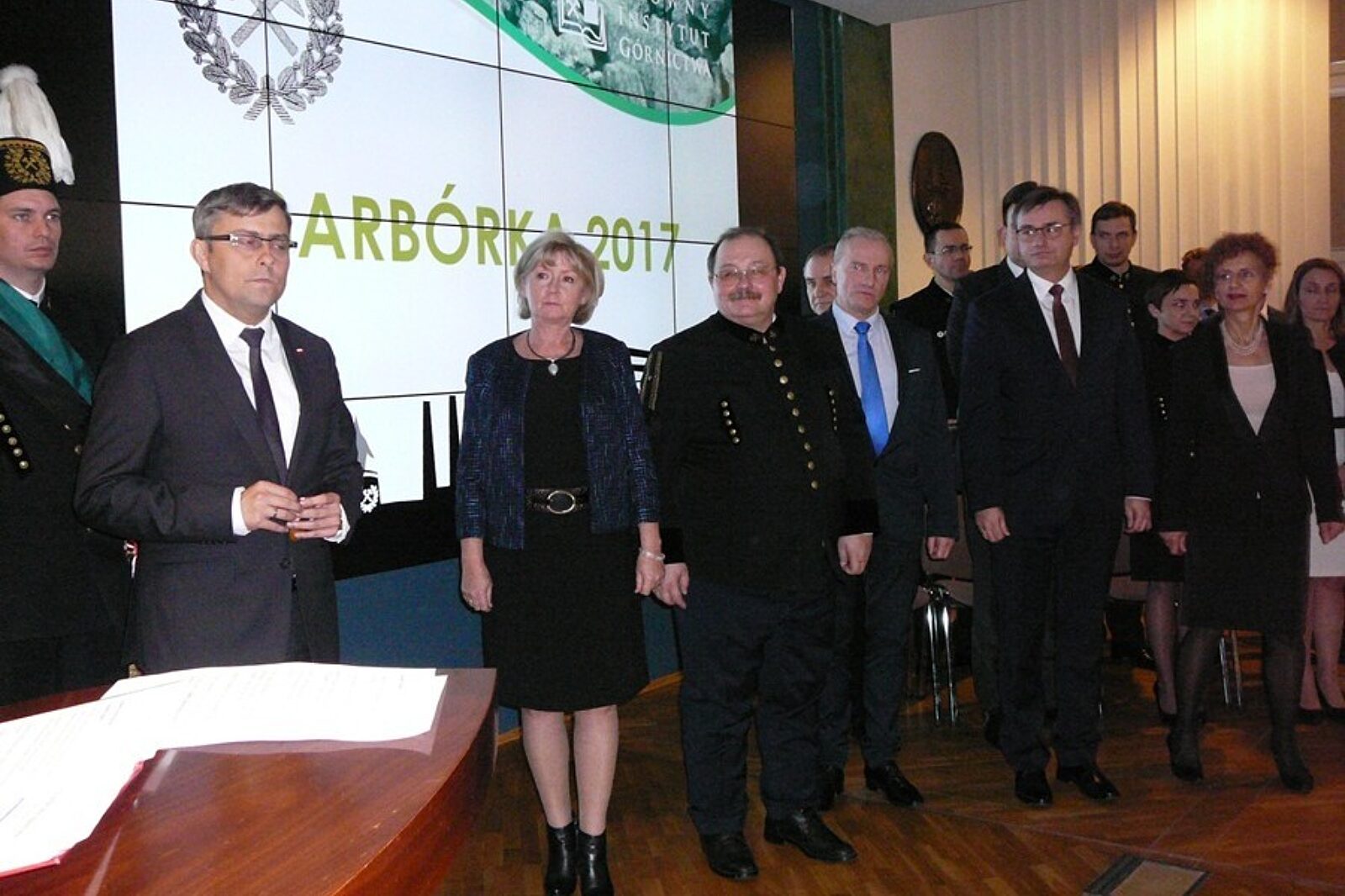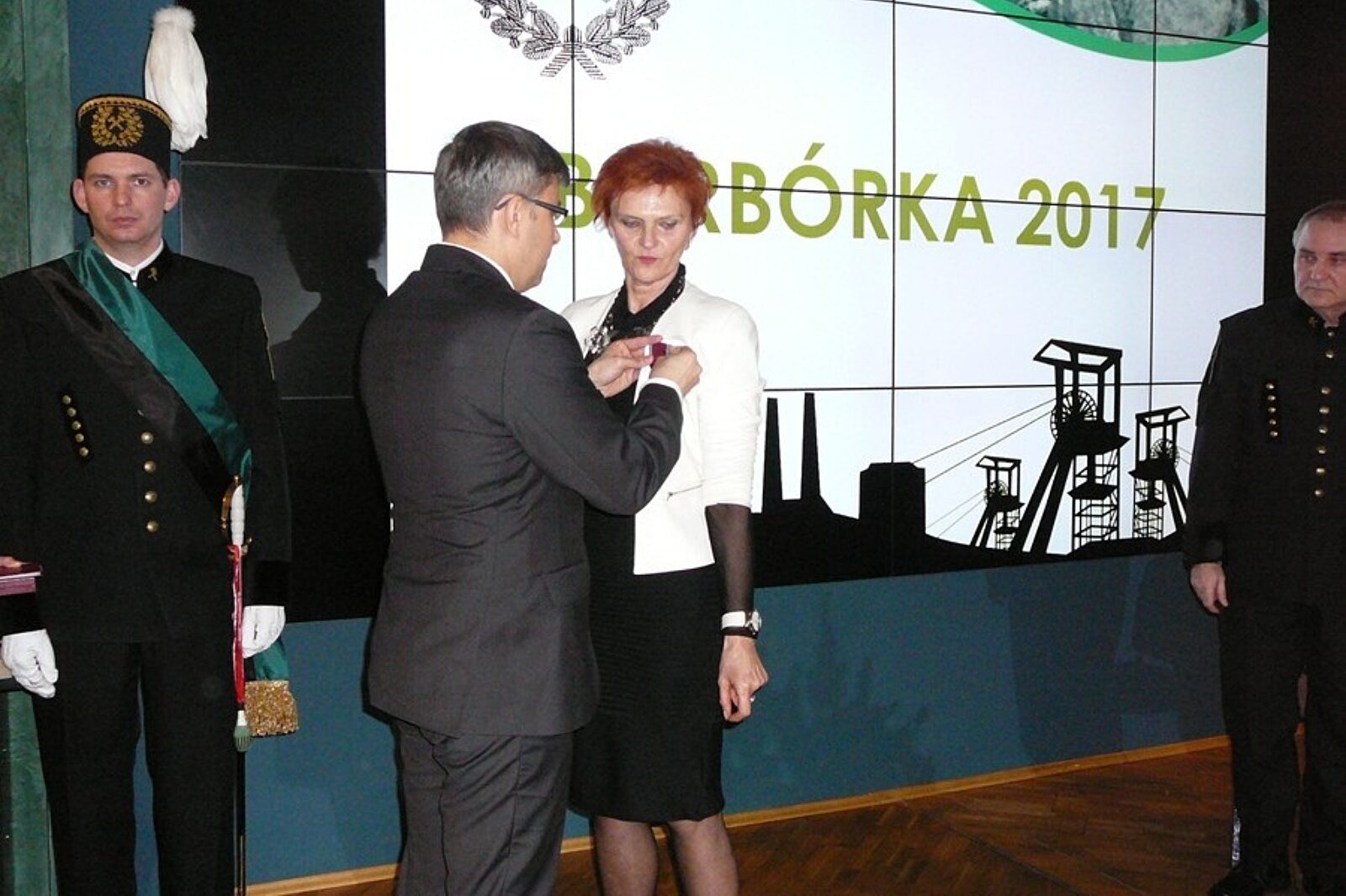 Wojewoda śląski Jarosław Wieczorek w imieniu Prezydenta RP podczas akademii barbórkowej w GIG-u odznaczył osoby zasłużone dla górnictwa