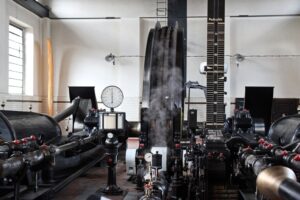 Maszyna parowa znajdująca się na terenie kopalni Królowa Luiza to urządzenie o mocy 2000 KM, które wyprodukowano w 1915 r. w Niemczech. Do 1990 r. obsługiwała ona szyb Carnall sięgający poziomu 503 m.