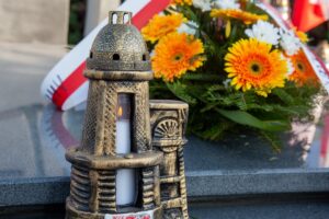 Górnictwo: Kwiaty i znicze pod pomnikiem upamiętniającym górników z ruchu Śląsk
