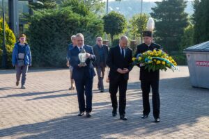 Kwiaty pod pomnikiem poległych górników złożyli m.in. członkowie zarządu SRK na czele z prezesem Jarosławem Wieszołkiem