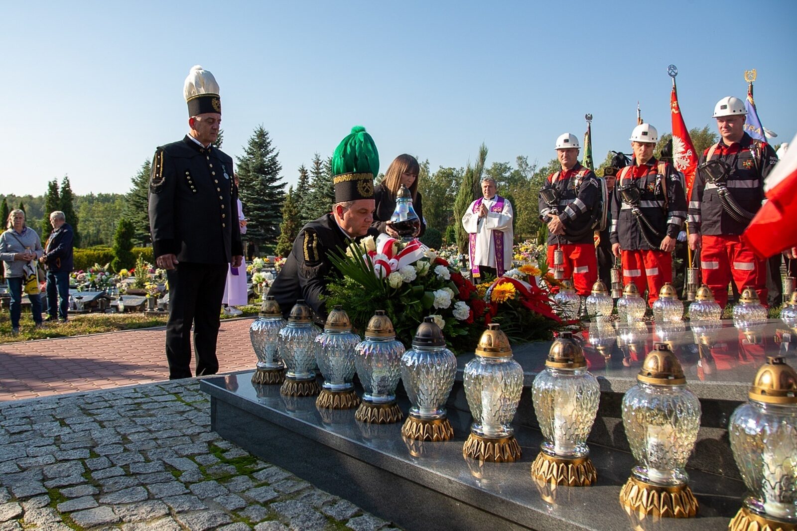 Górnictwo: Kwiaty i znicze pod pomnikiem upamiętniającym górników z ruchu Śląsk