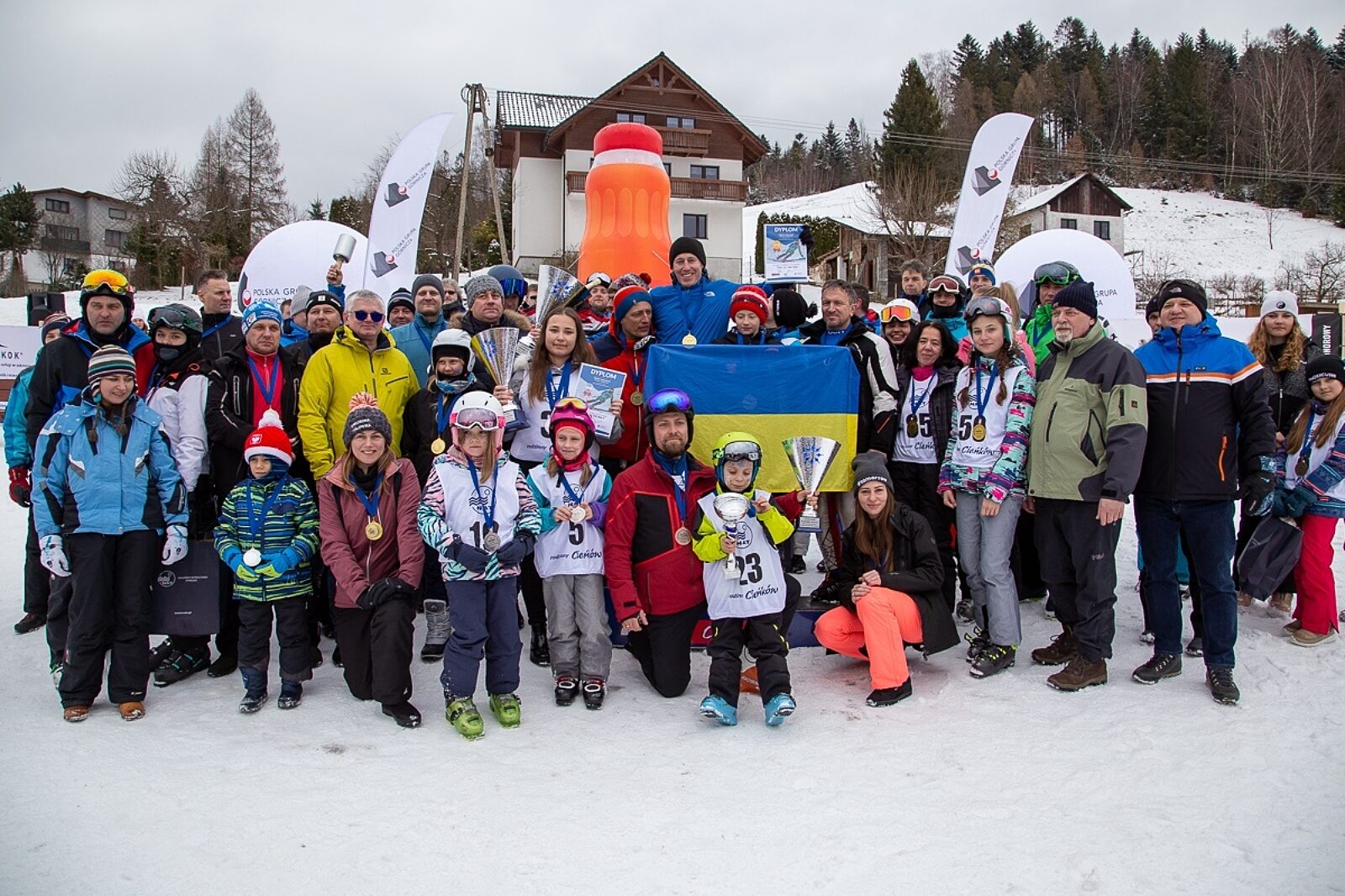 Pamiątkowa fotografia drużyn, które okazały się najlepsze w tegorocznych zawodach narciarskich branży górniczej