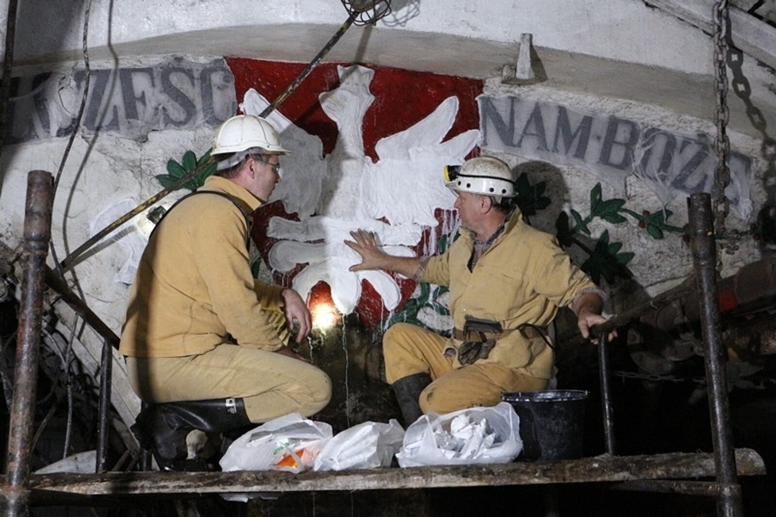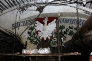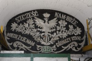 - Niestety, nie wiemy, kto wykonał te orły. Nie dotarliśmy w kopalni to żadnych dokumentów. Ponadto jest jeszcze jeden element zabytkowy. To godło górnicze z napisem "Szczęść Boże" z 1906 r., które znajduje się na poziomie III.