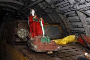 - Te rzeczy ktoś wykonał w latach dwudziestych, a ich następcy dbali o figurkę i płaskorzeźby. Dzięki temu zachowały się one w takim stanie i dzisiaj wyglądają dobrze. Na poziomie IV panował taki zwyczaj, że górnicy, którzy kończyli pracę w kopalni, zjeżdżali z kwiatami pod figurkę św. Barbary i tej ostatniej dniówki nie przepracowywali. To było takie zakończenie pracy górniczej - wyjaśniał dziennikarzom Leszek Trzciński, główny inżynier wentylacji w kopalni Kazimierz-Juliusz, który dodał, że nieznane są osoby, które stworzyły płaskorzeźby.