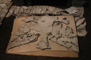 Prace związane z odzyskaniem płaskorzeźb rozpoczęły się 17 września. W związku z prowadzoną akcją przesunięto w czasie likwidację części dołowej kopalni. Obecnie do wyrobisk Kazimierza-Juliusza można dotrzeć tylko za pośrednictwem szybu K-1, ponieważ w ostatnim tygodniu zdemontowano liny z szybu K-2, którym w maju 2015 r. wyjechała na powierzchnię ostatnia tona węgla z Kazimierza-Juliusza.