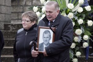 Po 1,5 godzinnej mszy trumna z ciałem 32-letniego górnika została przeniesiona na pobliski cmentarz, gdzie przy dźwiękach górniczej orkiestry została żłożona do grobu.