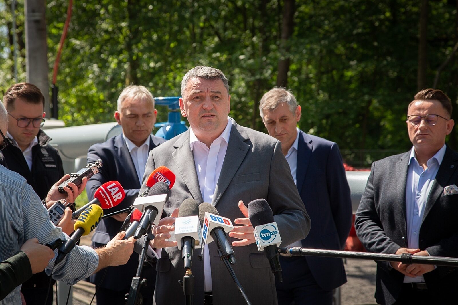 Wiceminister aktywów państwowych w czasie briefingu mówił o działaniach, które są podejmowane w związku z sytuacją zaistniałą w Trzebini