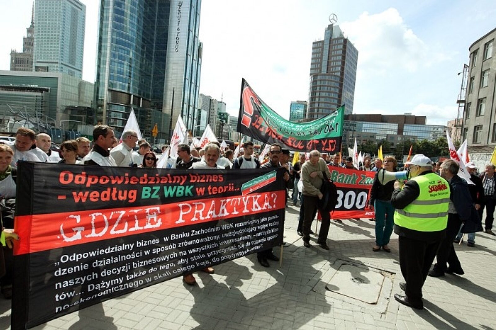 1 lipca pracownicy KKSM zgromadzili się oni w Warszawie przed siedzibą BZ WBK