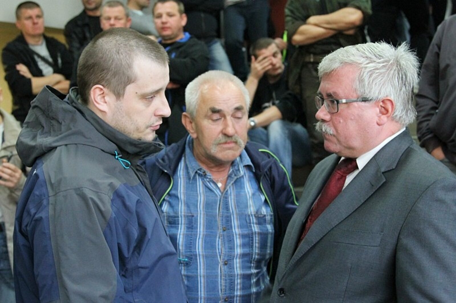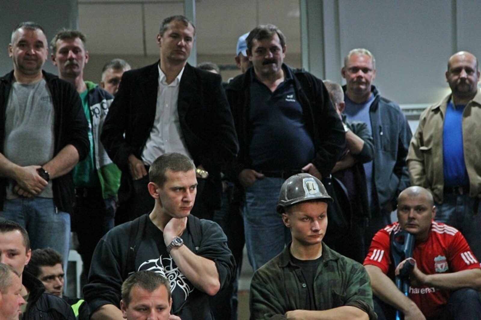 Spotkanie prezesa KHW Romana Łoja z załogą kopalni Kazimierz-Juliusz rozpoczęło się o godz. 6.00. Pojawiło się na nim kilkuset pracowników sosnowieckiego zakładu