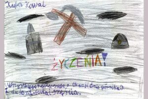 Rozmowę z uczniami sosnowieckiej szkoły obejrzeć można na portalu górniczym nettg.pl w zakładce wideo. Przy okazji tego spotkania nasz kolega Maciej Dorosiński przedstawił dzieciom prelekcję dotyczącą pracy w kopalni. Na koniec każdy ze słuchaczy miał okazję przymierzyć prawdziwe górnicze czako i skosztować kopalnioka. Efektem naszej wizyty są laurki z życzeniami dla górników, które dzieci wykonały na naszą prośbę. Postanowiliśmy nagrodzić najciekawsze z nich. W naszej ocenie najfajniejszą pracę wykonała Ewa Sajdak z klasy IIIa. Na drugim miejscu znalazła się laurka Mikołaja Seweryna z klasy IIa, a na trzecim Zosi Nowak z klasy IIIa. Wszystkie rysunki obejrzeć można obejrzeć poniżej.