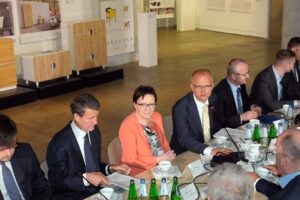 Poza panią premier w rozmowach uczestniczą m.in.: minister skarbu Andrzej Czerwiński, minister sprawiedliwości Borys Budka, wiceminister skarbu Wojciech Kowalczyk, sekretarz stanu w Kancelarii Prezesa Rady Ministrów Jakub Jaworowski, rzecznik rządu Cezary Tomczyk, marszałek województwa śląskiego Wojciech Saługa oraz wojewoda śląski Piotr Litwa.