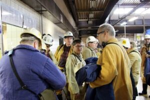 Goście wysłuchali informacji dyrektora zakładu Józefa Jaszczyka na temat obecnej sytuacji kopalni, a następnie zjechali na dół, aby bliżej przyjrzeć się technologiom eksploatacji węgla i poznać pracę górników.