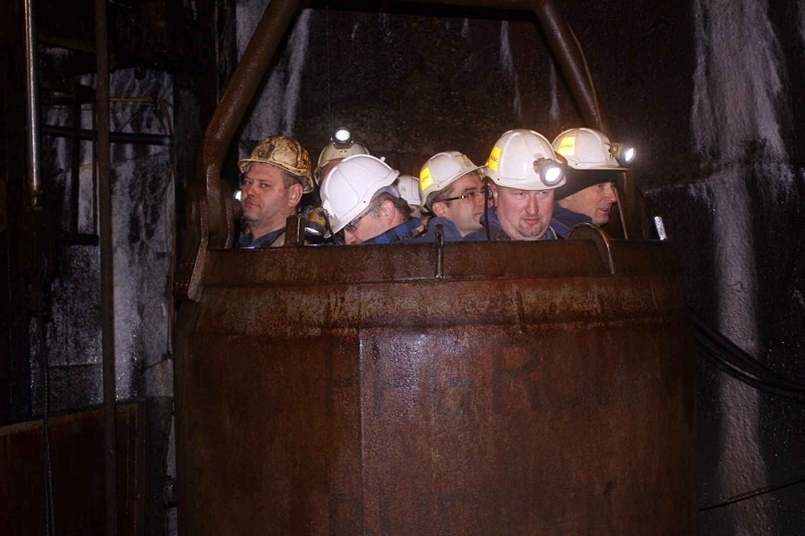Przedstawiciele śląskiej prokuratury i sądownictwa posmakowali podróży w głąb ziemi w naczyniu szybowym, które górnicy zwykli nazywać kubłem lub kiblem