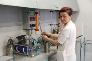 Kobiety można także spotkać w kopalnianych laboratoriach. Te z kolei całą szychtę spędzają w białych fartuchach.
