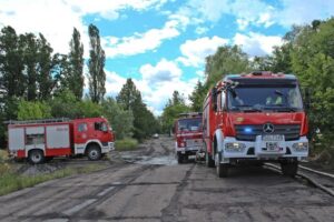 Sytuacja komplikowała się, bo wykryto nowe zarzewia ognia. Kierujący działaniami postanowił wezwać pluton rezerwowy, a nowe zastępy przybyłe z Knurowa wsparły gaszenie i zaopatrywanie w wodę strażackich prądownic.
